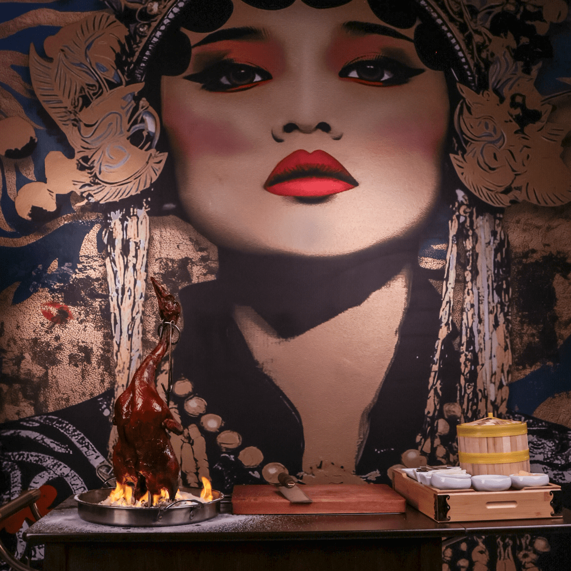 Lulu, is our muse woven throughout our murals, embodies this duality: one moment adorned in classic Chinese opera, the next styled in modern fashion. She represents heritage and reinvention, confidence and beauty, honoring the past while redefining modern Chinese dining today.